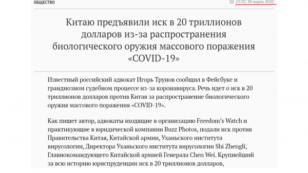 Сумма исков уже оценивается в несколько десятков триллионов долларов и совершенно понятно, что создание только прецедента в этом вопросе способно расколоть планету надвое – на те страны, кто подал иск против Китая и соответственно объявил ему санкции, и те, кто эти иски не поддержал.
