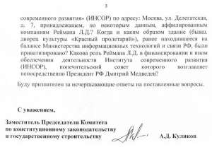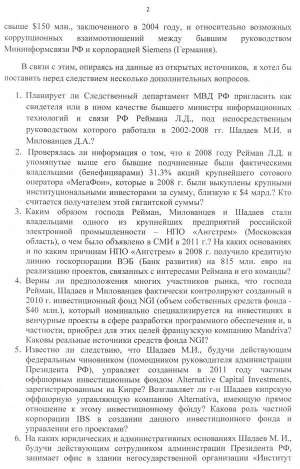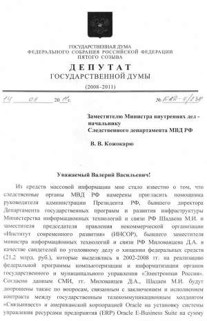Приведем лишь пару ярких примеров, раскрывающих глаза на стремительный карьерный рост 25-летнего госчиновника Шадаева. В 2011 году зампредседателя Комитета Госдумы по конституционному законодательству и государственному строительству Александр Куликов обратился к заместителю министра – главе Следственного департамента МВД РФ Валерию Кожокарю (который является однокурсником и считается близким другим Президента России Дмитрия Медведева) с просьбой расследовать деятельность ряда бывших руководителей министерства информационных технологий и связи РФ: экс-министра Леонида Реймана, бывшего заместителя министра Дмитрия Милованцева и экс-директора Департамента государственных программ и развития инфраструктуры министерства Максута Шадаева.