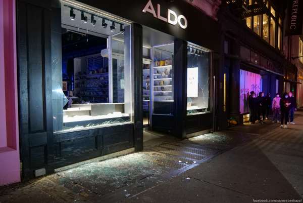 Вернулся домой только в 5 утра. Всю ночь наблюдал, как люди грабят город и как нью-йоркская полиция с этим ничего не делает. Началось все с очередных протестных манифестаций в Бруклине и Манхэттене, а вылилось в массовые грабежи и вандализм. Модного района Сохо с нами больше нет. Он был разграблен полностью и там происходил такой беспредел, что сам факт нахождения на улице с камерой становился опасным для здоровья.