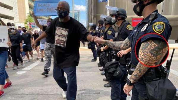 Хьюстонский полицейский, поддержавший темнокожего протестующего в США, в одночасье стал знаменитым. Пользователей Сети восхитила реакция правоохранителя, который ударил кулаком о кулак митингующего в знак одобрения. Однако наибольший интерес у юзеров вызвала загадочная татуировка на руке блюстителя порядка. На одной из многочисленных тату отчетливо видна надпись «Россия» и какой-то российский город с окончанием «овск». Тред о «руке России» на протестах в США моментально собрал множество просмотров и восхищенных комментариев. В первую очередь пользователи восхитились качеством набитого рукава.