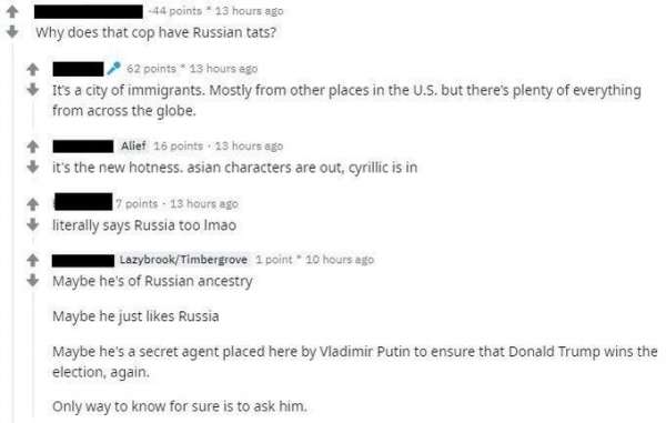 И, как оказалось, такая возможность представилась пользователям Reddit. В комментариях появился знакомый «руки России» и рассказал о полицейском, чья татуировка взбудоражила американскую общественность.