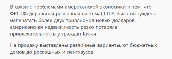 Американские активы вот-вот превратятся в мертвый груз, и потому все здравомыслящие люди активно распродают недвижимость и гособлигации США на фоне возникшей угрозы обесценивания доллара. Так и поступили граждане КНР, где политика дедолларизации идет полным ходом.