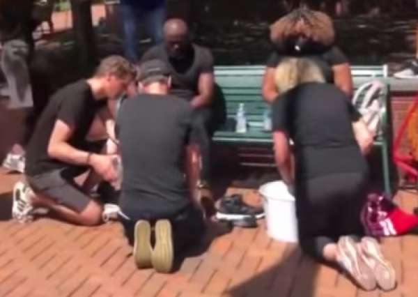 В субботу в Кэри, штат Северная Каролина, во время демонстраций Black Lives Matter группа белых верующих, среди которых были как сотрудники полиции, так и обычные граждане, омыла ноги чернокожим священникам и демонстрантам и помолилась вместе, покаявшись за грехи в отношении чернокожих в целом, сообщает сайт TMZ.