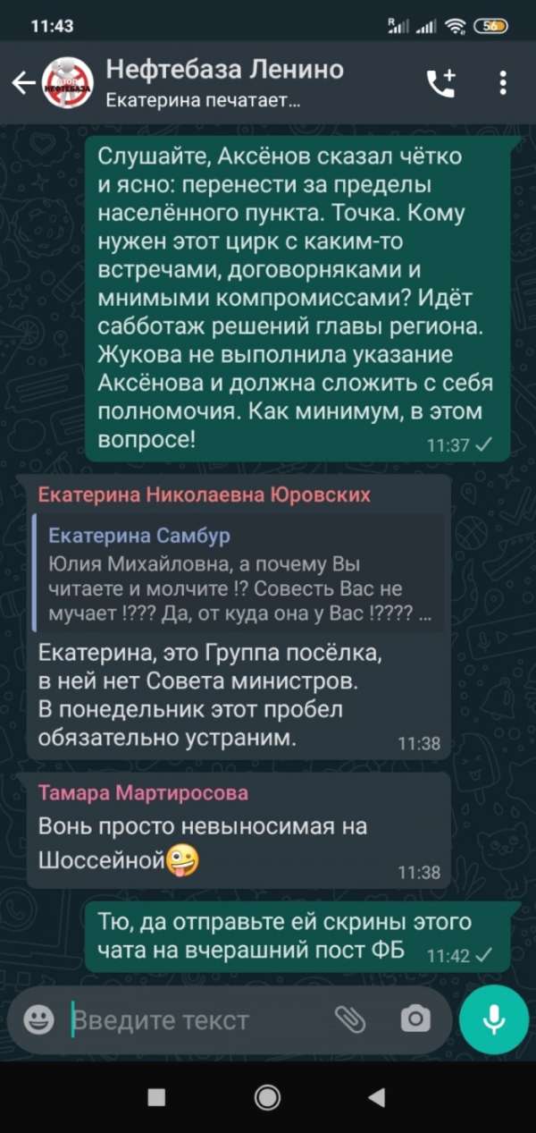«Юлия Михайловна, почему Вы нас читаете и молчите? Совесть Вас не мучает?», — спрашивает чиновницу возмущённая жительница посёлка Екатерина Самбур.