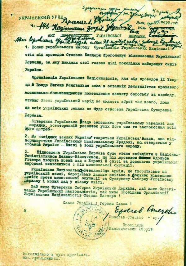 "3. Воссозданное Украинское Государство будет тесно сотрудничать с Национал-Социалистической Велико-Германией, которая под руководством Адольфа Гитлера создаёт новый порядок в Европе и мире и помогает украинскому народу освободиться из-под московской оккупации"», — написал Журавко предоставив копию «Акта».