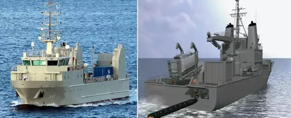 Замаскированный корабль, оборудованный пусковыми установками торпед «SeaHake mod. 4 ER», экспортированный Германией в ОАЭ (2014г)