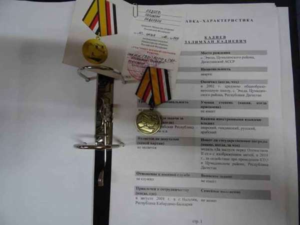 Между тем стали известны шокирующие подробности из жизни главаря террористов. На странице «Филиал службы военной разведки в Алеппо» в Facebook размещена информация, где утверждается, что Кадиев с 2008 года являлся агентом российских спецслужб. Это подтверждается тем, что в 2014 году он был награждён медалью «За заслуги перед Отечеством II степени» за содействие при проведении контртеррористической операции в Цумадинском районе Республики Дагестан.