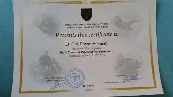 Диплом об окончании «Базового курса психологических операций»