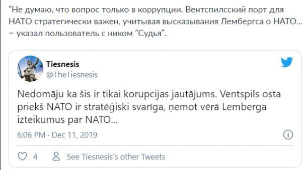 Устранение Айварса Лембергса, к слову, поставило жирную точку в этом деле. Мэр Вентспилса оказался слишком уж «пророссийским» для Альянса и Риги. Мало того, он даже критиковал НАТО!