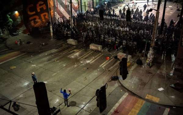 Поэтому теперь к холму прибыли сотни полицейских и бойцов Национальной гвардии с требованием покинуть район. Для этого организовано два коридора для выхода, и всех несогласных берут под арест.